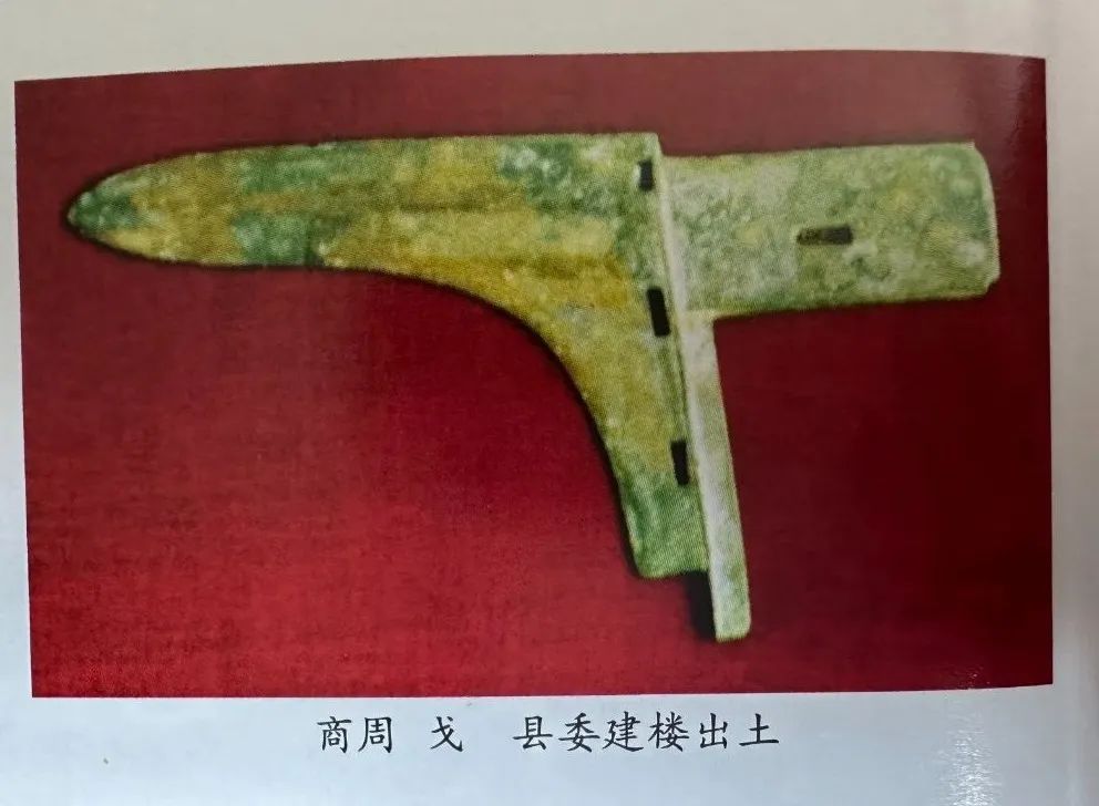 在挖掘过程中,县委建楼时出土了滑石贝币和铜马衔、戈、削刀等青铜器。