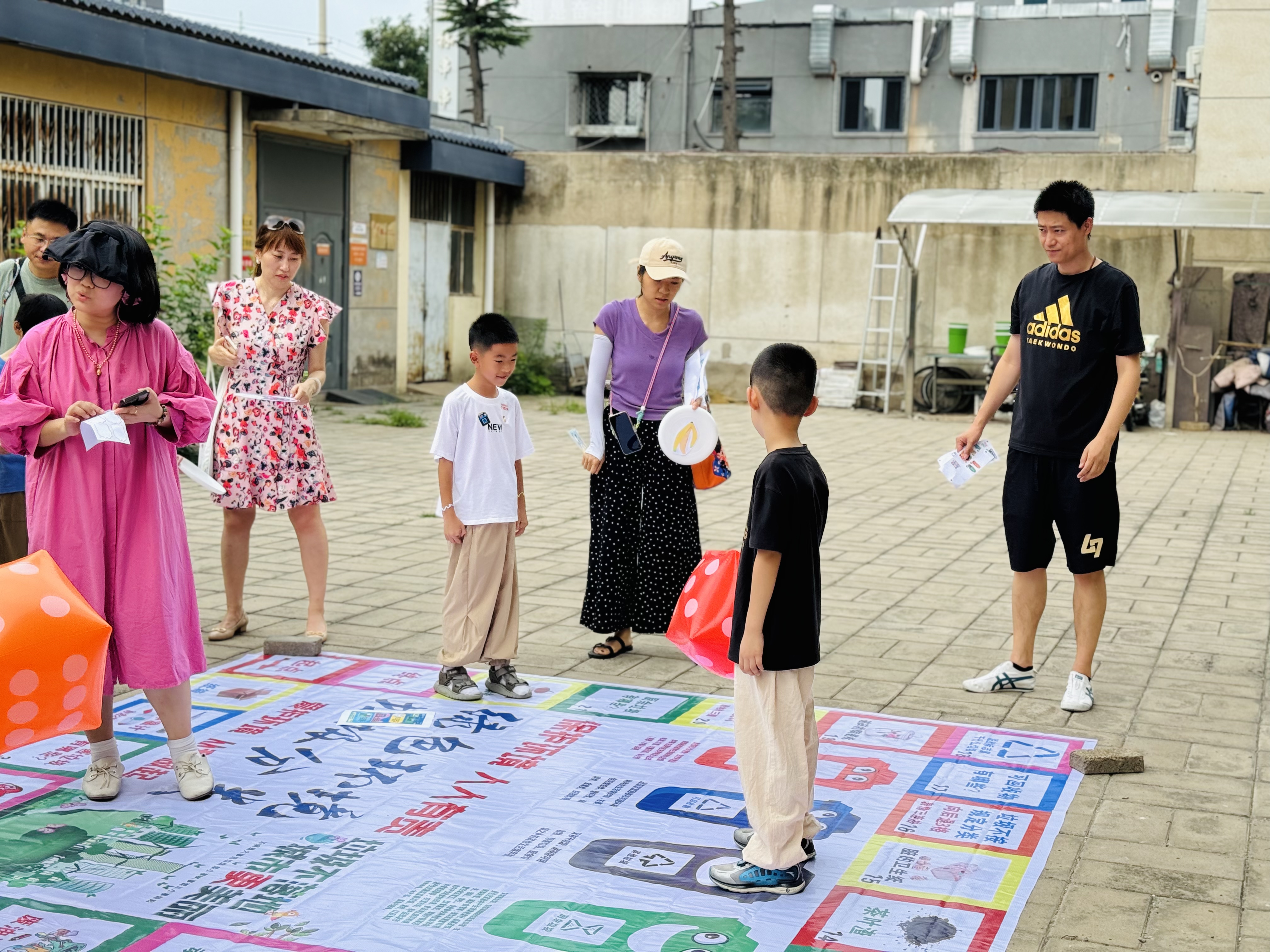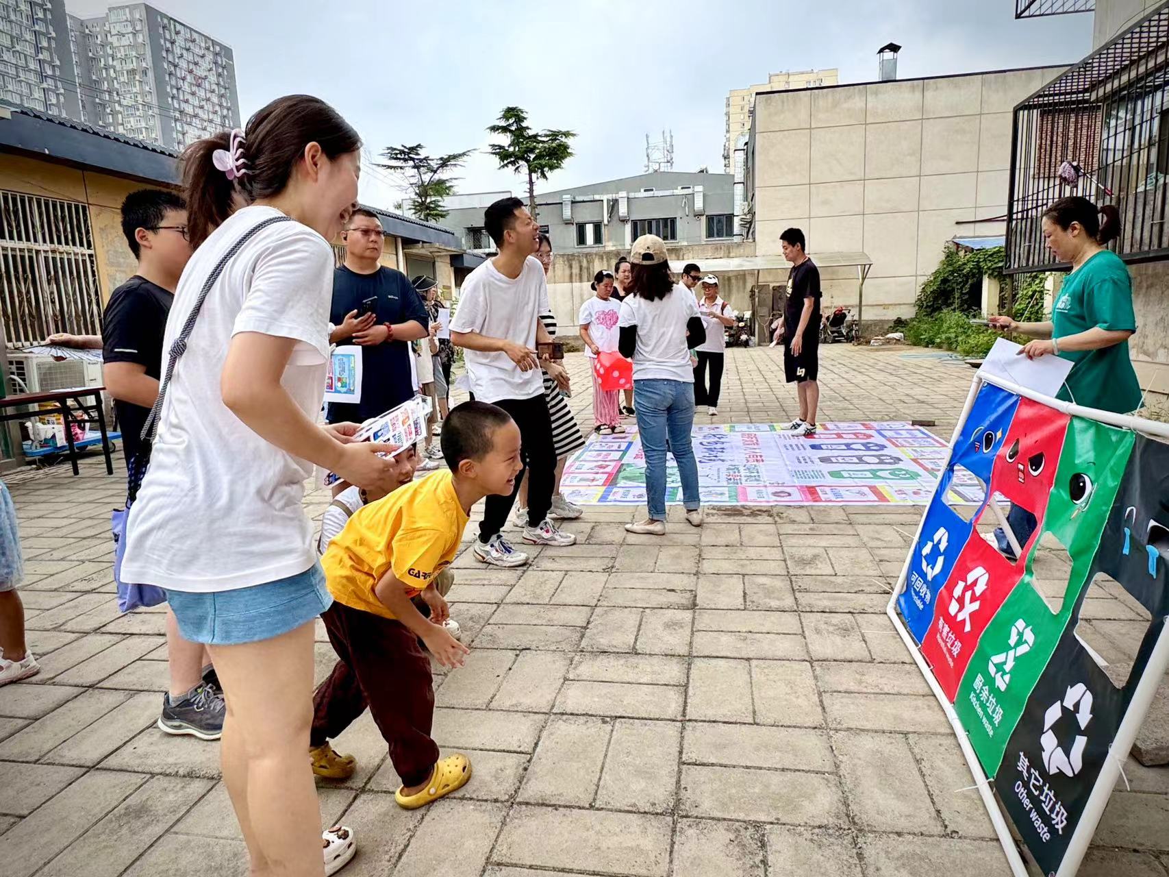 分在当“夏”,青塔街道芳园社区举办了一场垃圾分类亲子运动会,以一种独特而有趣的方式宣传垃圾分类知识。家长带着小朋友们早早地来到现场,孩子们的脸上洋溢着兴奋,期待着即将开启的“奇妙冒险”。运动会共分为三个精彩有趣的项目,“垃圾分类飞行棋”项目是在一块巨大的棋盘上进行,棋盘上每个格子都有着各种垃圾分类问题,参与者通过掷骰子决定前进的步数,回答对应的问题。这个项目不仅充满了趣味性,还考验了大家对垃圾分类知识的掌握程度,让孩子们在轻松愉快的氛围中学习到了垃圾分类小常识。第二个项目“垃圾分类沙包投掷”,现场摆放着四个代表可回收垃圾、有害垃圾、厨余垃圾和其他垃圾的装置。孩子们手持沙包,根据沙包上标注的垃圾种类,将其投入相应的垃圾桶中。这一项目既锻炼了孩子们的手眼协调能力,又加深了他们对不同垃圾归属类别的记忆。最后的“垃圾分类飞盘”更是将活动推向高潮。孩子们手握的飞盘印着不同垃圾的图案,飞向对应的垃圾分类装置中。“这次活动真的好好玩,我还学习到了好多垃圾分类的知识,爸爸妈妈都夸我好厉害。”参与此次活动的孩子兴奋地说道。完成三个运动项目的家庭,都可以领取一份精美的小礼物。礼物虽小,却蕴含着对孩子们积极参与的肯定和鼓励。