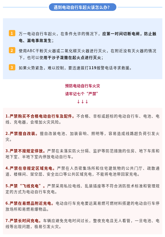 电动自行车一旦起火,可能会给人们的生命财产造成极大损失,安全使用电动自行车,这些要点请掌握!↓↓↓