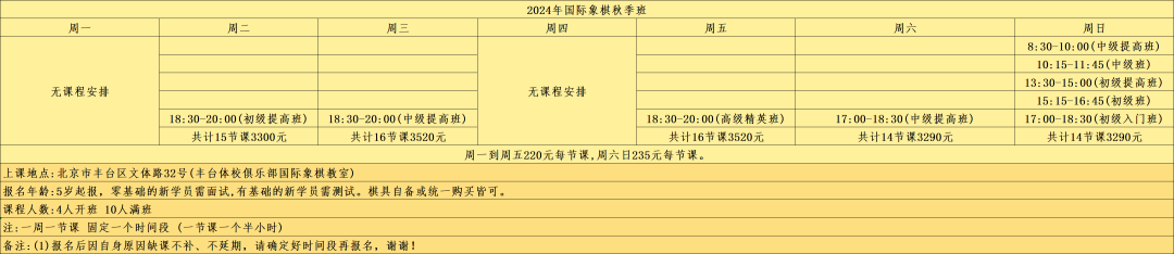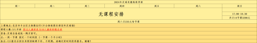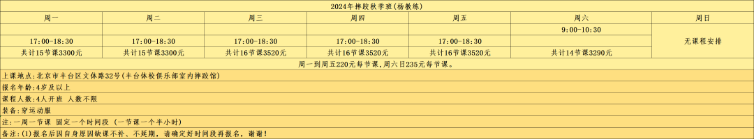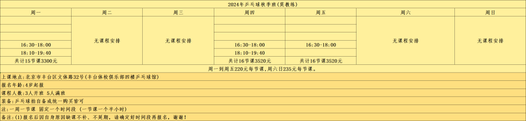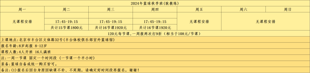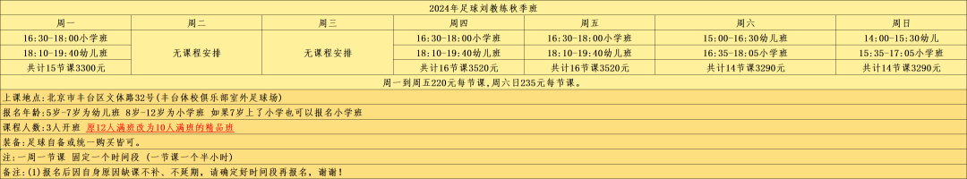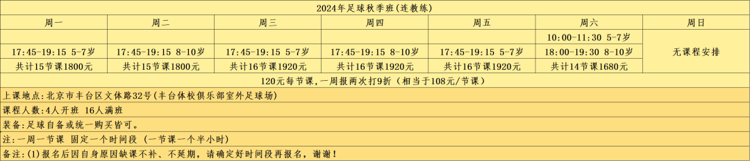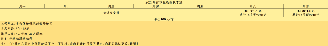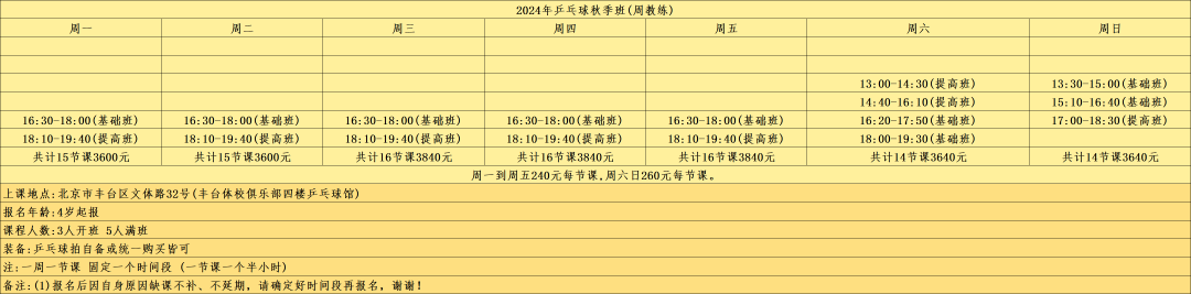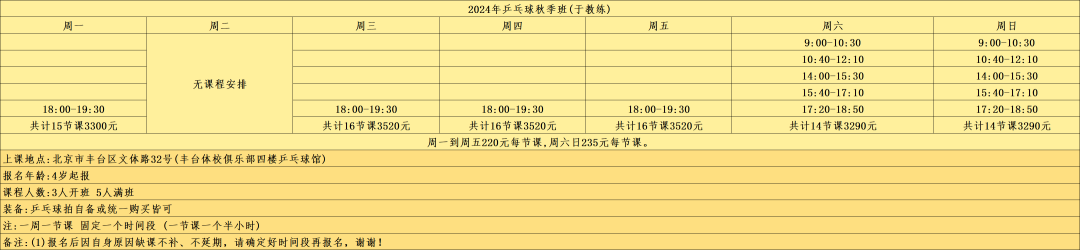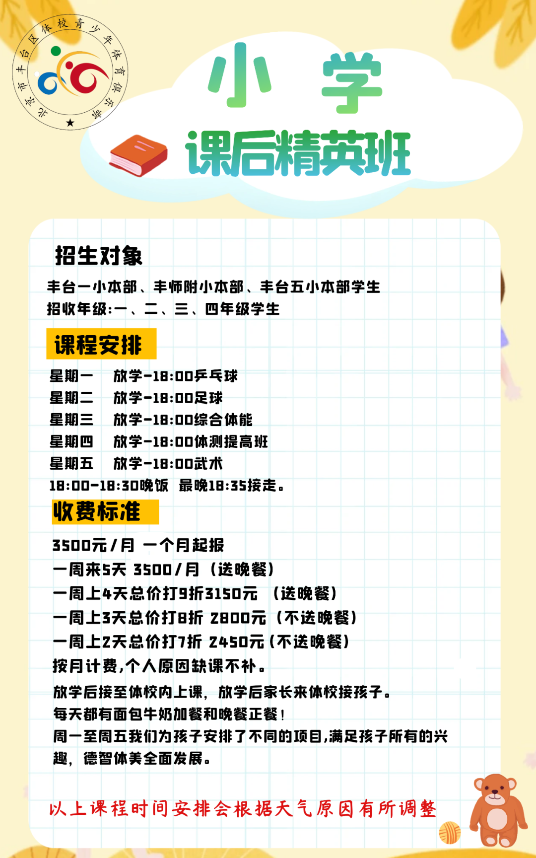 ●名额有限,如班级已满,请随时关注“北京丰台区体校青少年体育俱乐部”公众号后台报名链接,如果出现了临时退班学员,系统将自动显示空余名额。