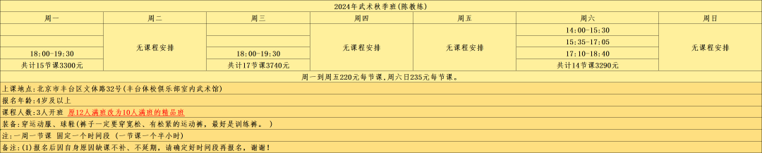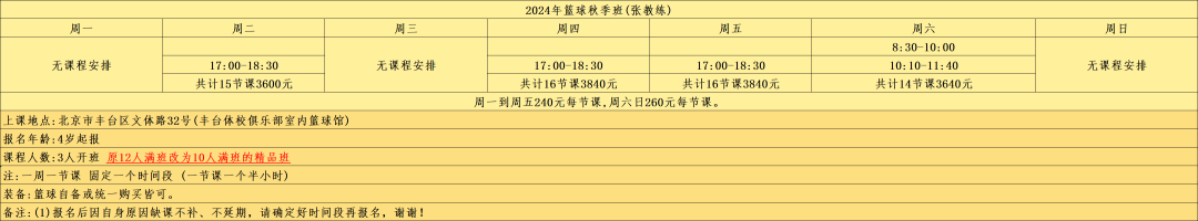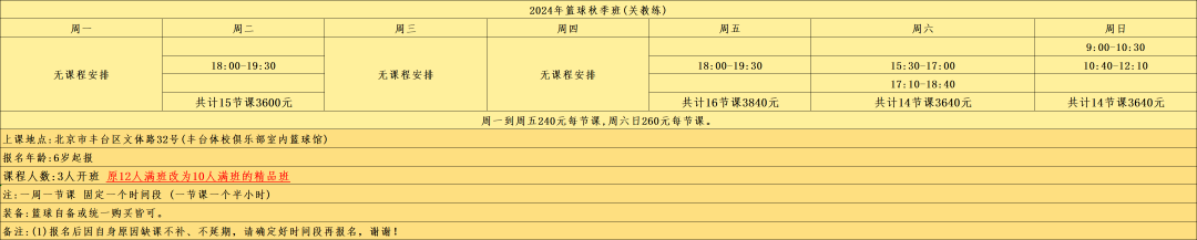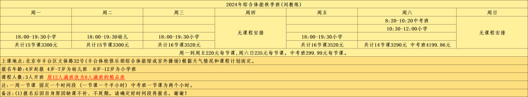 综合体能、篮球、足球、武术从12人班改成10人精品班
