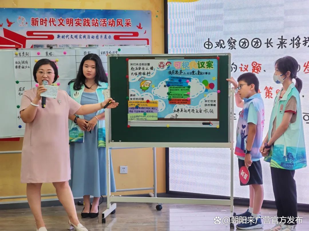 近日,由朝阳区妇联主办,来广营地区妇联承办,清苑路第三社区举办的“共绘五宜朝阳 朝娃说”儿童观察团系列活动迎来收官。北京市青联委员、朝阳区政协常务委员李秋雪,朝阳区政协委员吕同国,来广营地区妇联负责人蔡莺,清苑路第三社区党委书记彭利萍听取了童心观察团成果汇报。