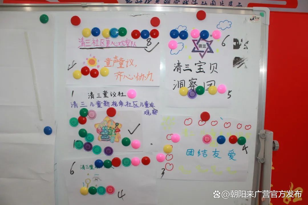 在前期活动中,孩子们自己设计了团旗,确认了童心观察团的团名,按照组织架构,孩子们通过自荐及表决的方式,选出了清三社区儿童观察团团长1名,副团长2名。