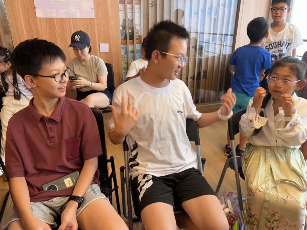 丛君敬与小读者分享了自己的成长经历和感悟,用生动的故事和深入浅出的话语,激发着小读者对知识和探索的热情。她精心设计了一系列充满趣味和创意的游戏环节,慢慢引导小读者们积极投身于游戏之中,分组进行讨论和演练,思维的火花不断迸发。在实践中不断提升自己的表达能力,小读者们充分发挥自己的想象力和创造力,展现出惊人的天赋和热情。丛君敬穿梭在各个小组之间,耐心地倾听着他们的发言,及时给予指导和建议。现场氛围热烈而欢快,孩子们的欢笑声和讨论声此起彼伏。在游戏的过程中,小读者们不仅收获了快乐,更重要的是,他们学会了从不同角度思考问题,开拓了创新思维。