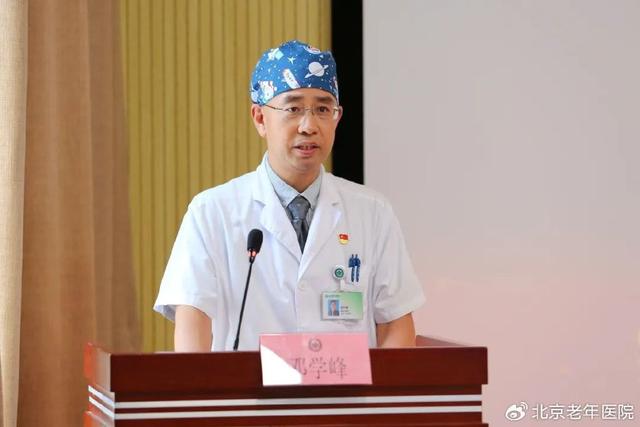 北京市优秀医师代表邓学峰主任代表全体医师发言。他表示本次被评选为第九届北京优秀医师,既是对他工作的肯定,更是一种激励和鞭策。未来将以此为契机,继续秉承医者仁心的职业理念,深入探索学科发展,将自己多年的所学所想所长应用于实践中,发挥医疗技术特色和优势,提升医疗水平,改善服务质量,为医院的可持续、高质量发展贡献力量。