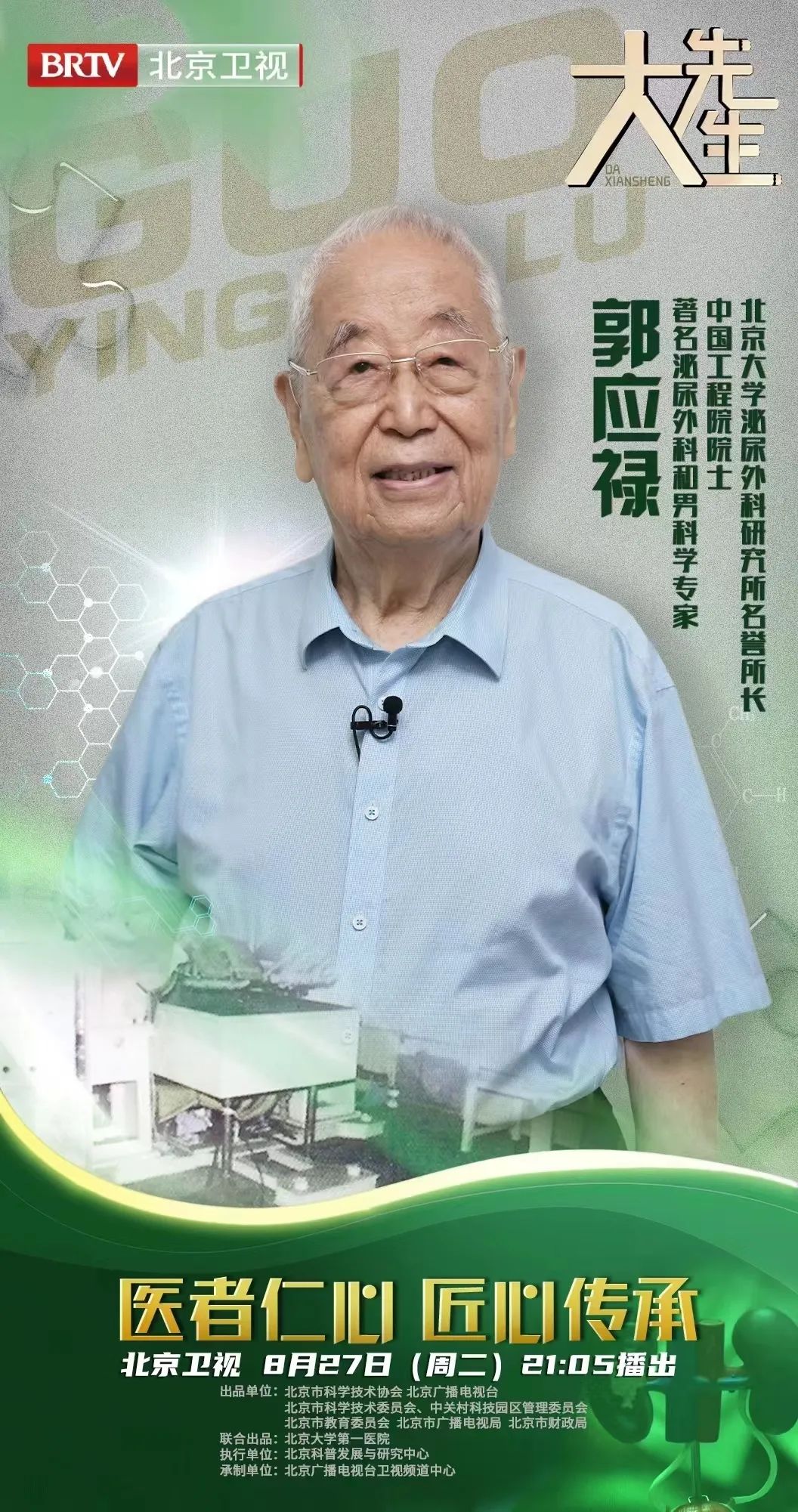 更多精彩内容,8月27日21:05分,锁定北京卫视《大先生》第三季第五期,了解郭应禄院士的医者人生!