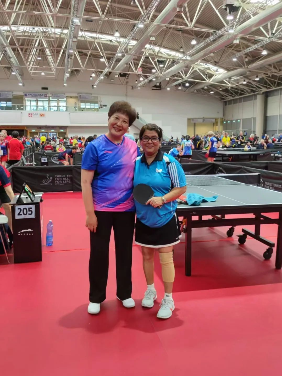 2024年邓蓉蓉和小花园队友搭档,获得“2024年罗马世界大师级乒乓球比赛”60-64岁年龄组的女双亚军。