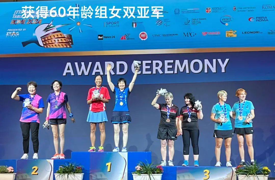 ■ 2024年罗马世界大师级比赛荣获60岁年龄组女双亚军