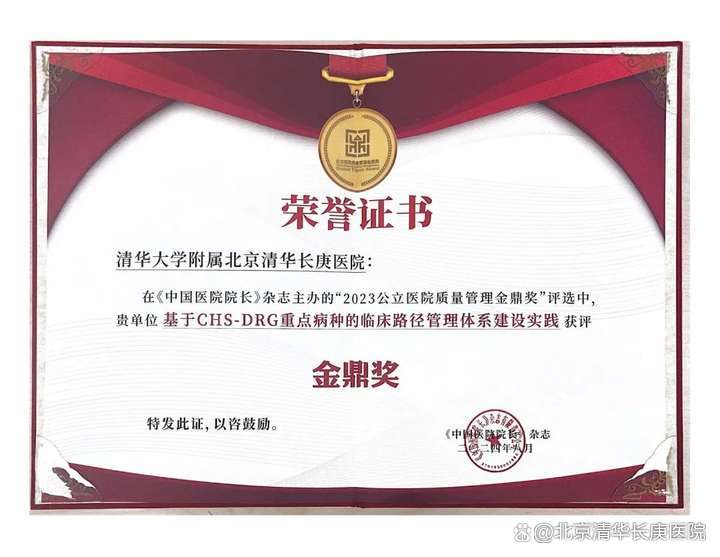 8月30日,第18届中国医院院长年会主论坛及2023公立医院质量管理金鼎奖颁奖典礼在武汉举行,北京清华长庚医院凭借《基于CHS-DRG重点病种的临床路径管理体系建设实践》项目脱颖而出,荣获“2023公立医院质量管理金鼎奖”,成为全国获此殊荣的五家医院之一。