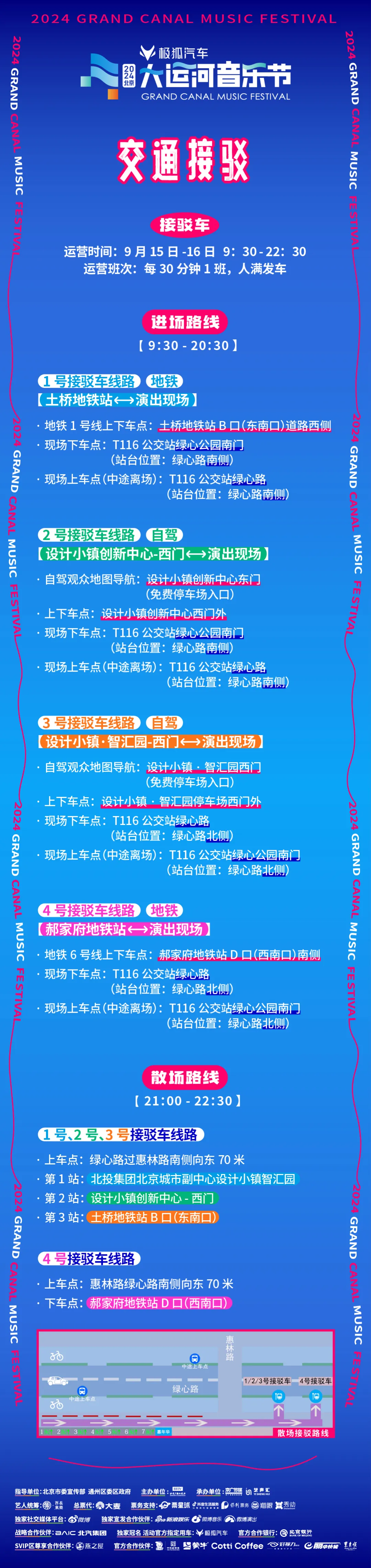 我们为大家准备了自土桥地铁站、郝家府地铁站往返于音乐节现场之间的免费交通接驳车,乘坐地铁前往的观众可在地铁1号线土桥站或6号线郝家府站出站后乘车前往音乐节现场。