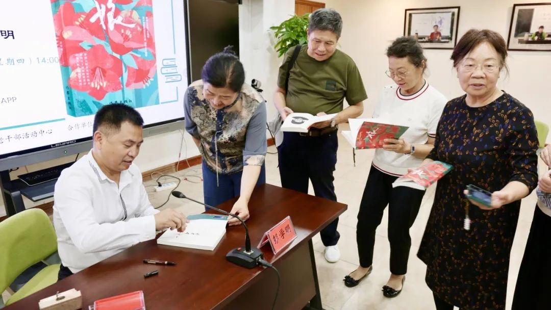 彭学明从创作初衷谈起,与老同志细致分享创作中的心路历程,深情讲述自己与“娘”不同时期的感人故事,解读对中华民族传统美德孝道文化的理解,表达对湘西故土的热爱和对亲人的无限思念。彭学明真诚的情感、质朴的语言、深刻的人生体会,引起了大家强烈共鸣,不少老同志在现场感动落泪。
