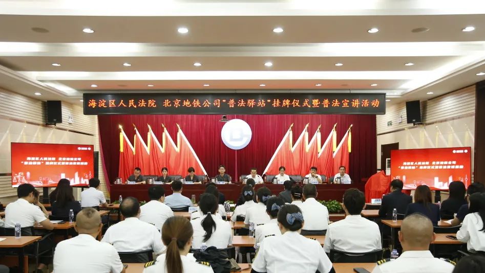 9月20日下午,海淀法院与北京市地铁运营有限公司举行“普法驿站”挂牌仪式,在北京市地铁运营有限公司运营三分公司、运营四分公司挂牌成立“普法驿站”,并现场开展普法活动。