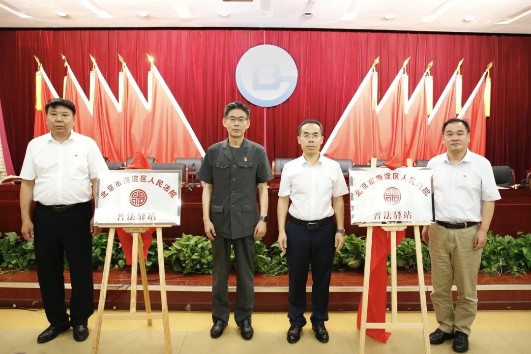 随后,海淀法院党组成员、政治部主任戴国,北京市地铁运营有限公司总法律顾问尹红强,运营四分公司党委书记、海淀区人大代表马晓波,运营三分公司经理张文强共同为“普法驿站”揭牌。伴随着北京地铁“普法驿站”的成立,海淀法院线下普法覆盖面实现了跨越式拓展,也将普法更加广泛地延伸到了百姓的“衣食住行”场景之中。