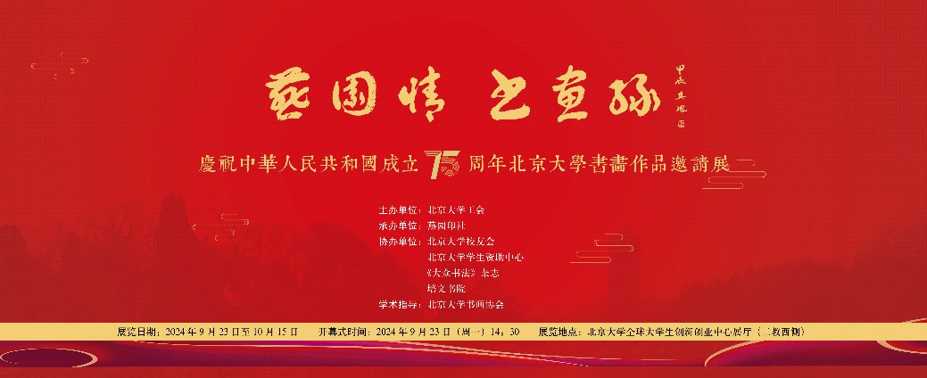 9月23日下午,“燕园情·书画缘——庆祝中华人民共和国成立75周年北京大学书画作品邀请展”在全球大学生创新创业中心展厅开幕。本次活动由北京大学工会主办,燕园印社承办,并得到了北京大学校友会、北京大学学生资助中心、《大众书法》杂志、培文书院等多家单位的协办支持,北京大学书画协会提供了学术指导。