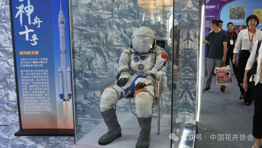 展会中还有两项与众不同的展示项目,一是以“遇见非遗”为主题中国传统花艺展区,集中展示了中式传统插花之美,并将文化科普、插花赏析、插花表演融为一体,传承和弘扬中华文脉。另一项是引入航天主题特展,不仅展出太空育种成果,更将真正在太空旅行过的神舟十号航天员的航天服原件带到了现场,让大众可以近距离感受来自太空的神奇魅力。