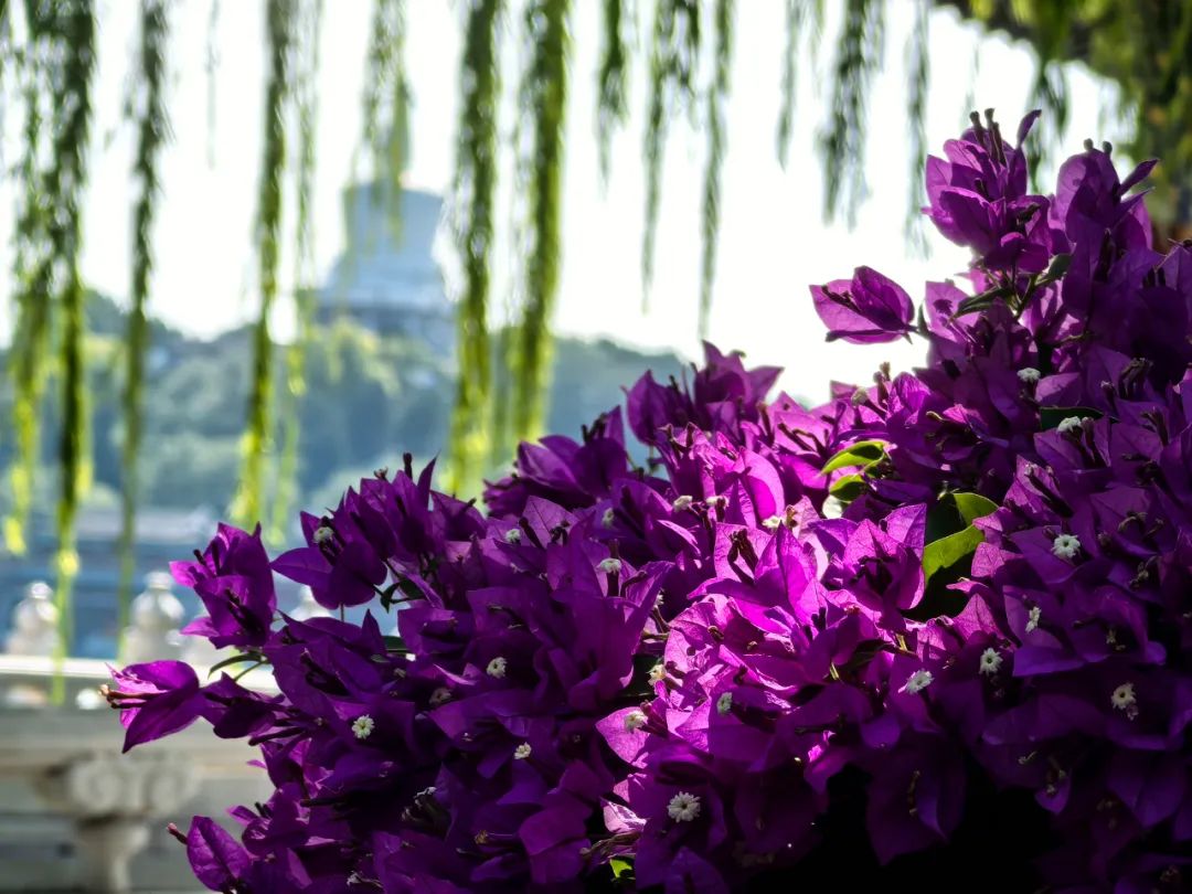 别具特色的花卉吸引着小伙伴们纷纷与之打卡拍照。无论是以白塔为背景,还是以古建筑为背景,有了明艳的花卉加持,怎么拍都好看!