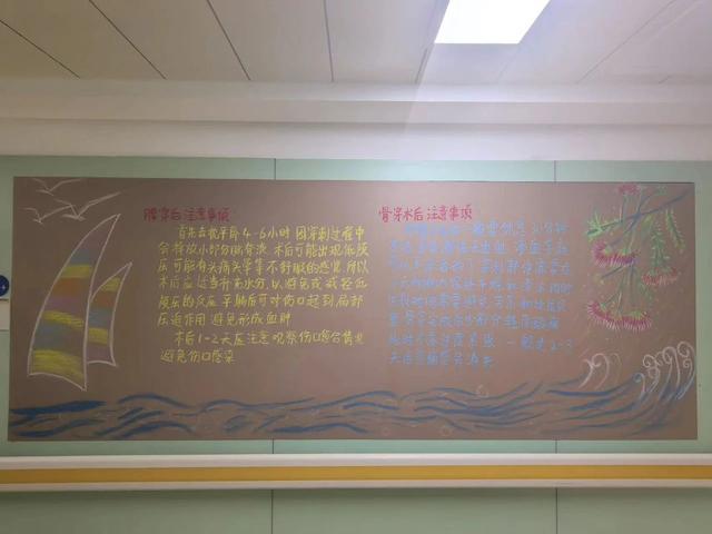 手绘板报不仅是病房的装饰,更是患者获取健康知识的重要途径。护士们根据患者的实际需求,将复杂的医学知识以图文并茂、通俗易懂的形式呈现出来。比如,腰穿术后、骨穿术后的护理注意事项等实用的科普内容,让患者在接受治疗的同时,也能更好地了解自身病情,提高自我管理能力。