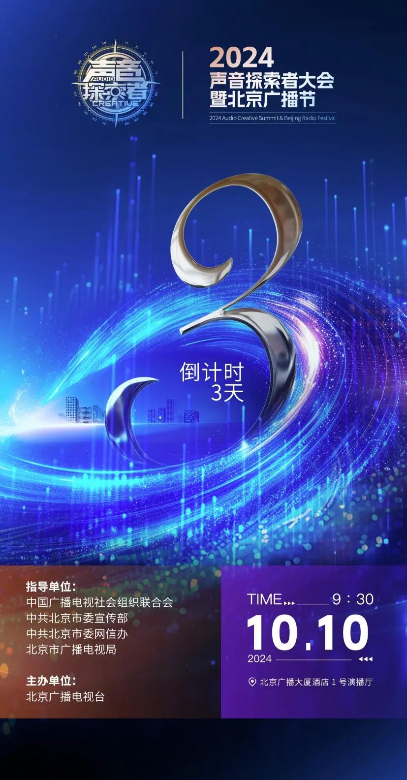 十月金秋,硕果丰饶!在这象征着收获与成就的季节,由中国广播电视社会组织联合会、中共北京市委宣传部、中共北京市委网信办、北京市广播电视局联合指导,北京广播电视台主办的2024声音探索者大会暨北京广播节将于10月10日在北京广播大厦酒店演播厅正式收官,当日将同步举办“声意盎然”广播融合运营精品案例展演活动和第二届(2024)应急广播播出机构大会两场活动。