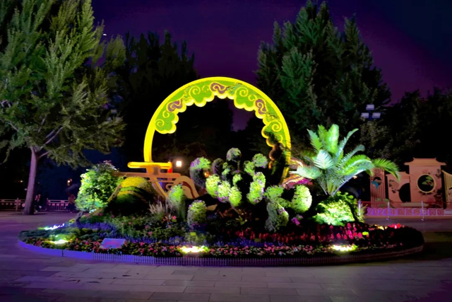 与陶然牌楼下的“龙腾”花坛交相辉映
