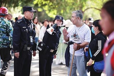 国庆假期,各大公园景区迎来了客流高峰,熙熙攘攘的人群中一抹“警察蓝”格外显眼。