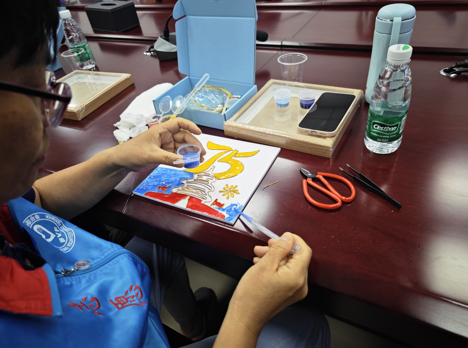 掐丝珐琅,以其精湛的工艺、绚丽的色彩和独特的艺术风格,被誉为“国之瑰宝”,重点站区管委会清河站办特别策划了这场掐丝珐琅体验活动,旨在传承和弘扬这一非物质文化遗产,激发大家的爱国情怀,站区的服务保障人员们用掌心艺术共同为祖国母亲送上最诚挚的祝福。