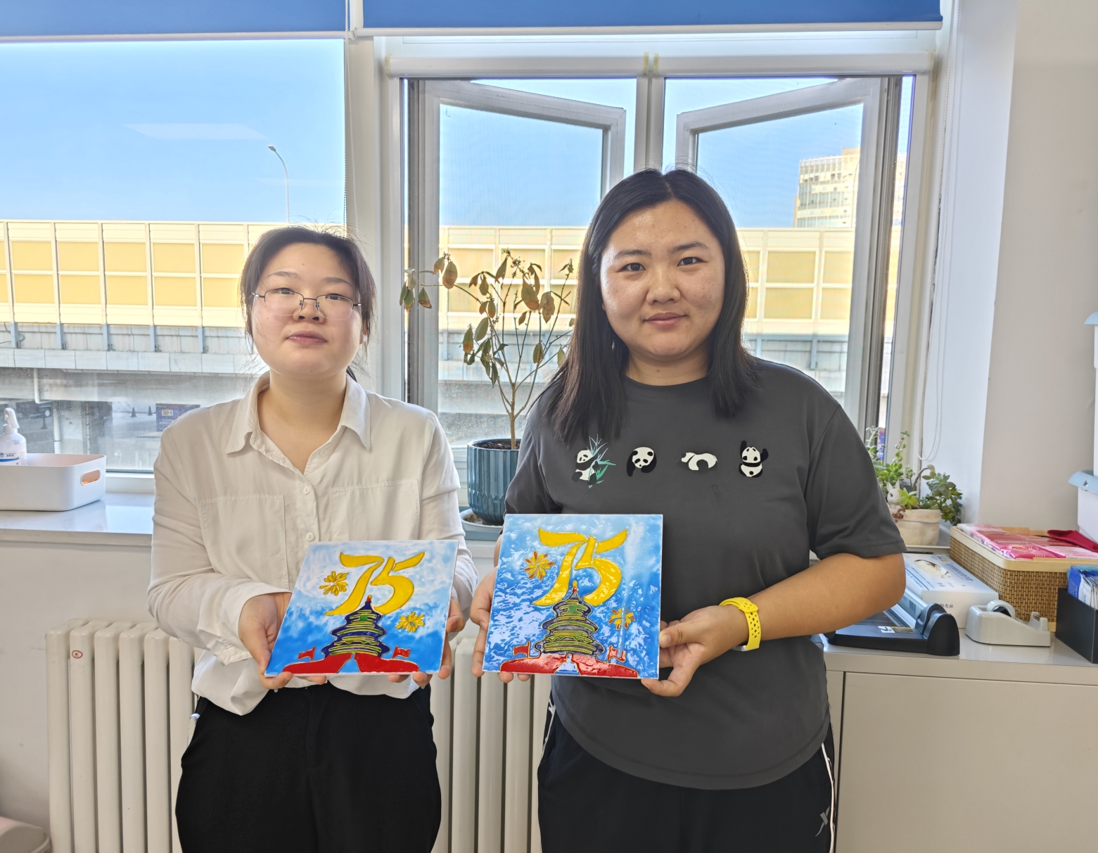 值得一提的是,本次掐丝珐琅的图案“75+天坛”也蕴含着巧思——75代表祖国七十五华诞,而天坛作为中轴线上的地标建筑,庆祝北京中轴线申遗成功。在专业老师的讲解下,大家深入了解掐丝珐琅,随后按照步骤小心翼翼地掐制金属丝,认真地填充珐琅釉料,用细腻的手法和心思构绘出一幅幅色彩斑斓、满含美好的掐丝珐琅作品,表达着对祖国深深的祝福和热爱。