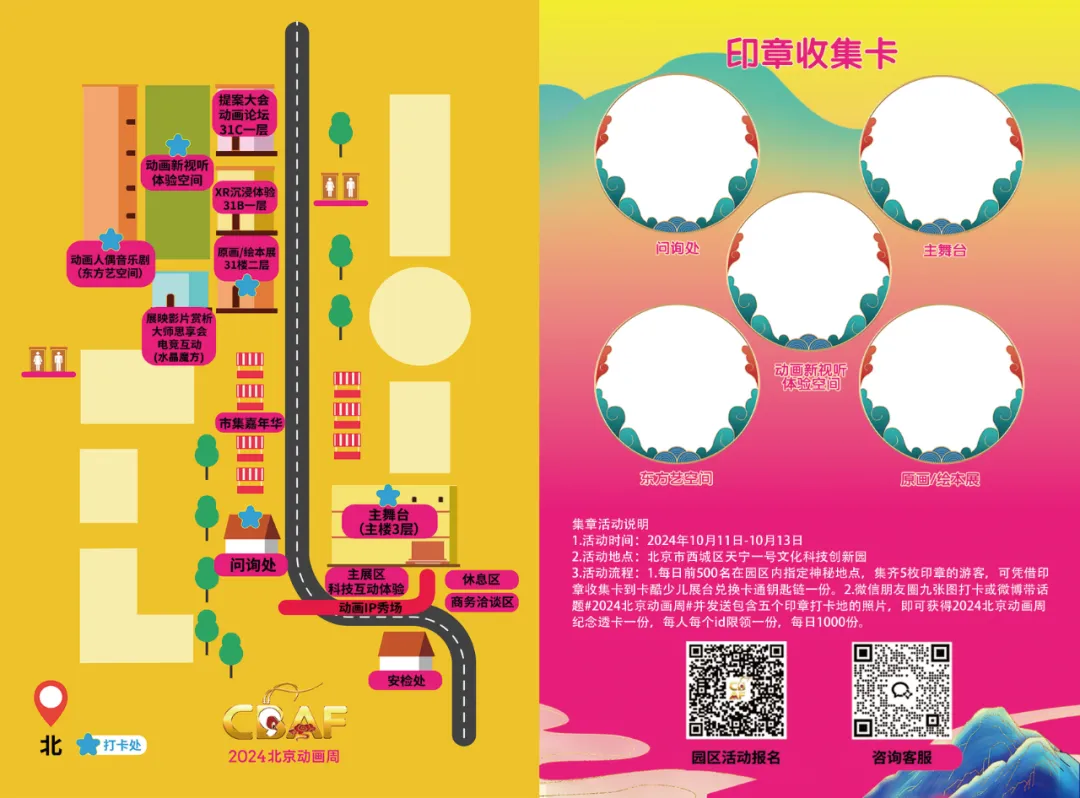2.微信朋友圈九张图打卡或微博带话题#2024北京动画周#并发送包含五个印章打卡地的照片,即可获得2024北京动画周纪念透卡一份,每人每个ID限领一份,每日1000份。