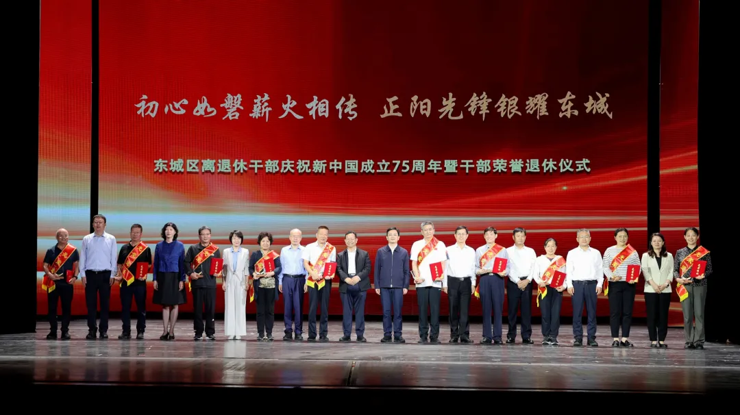 东城区隆重举行“初心如磐薪火相传 正阳先锋银耀东城”离退休干部庆祝新中国成立75周年暨干部荣誉退休仪式,号召广大离退休干部大力弘扬核心区使命价值,继续发挥自身优势,贡献“银发力量”。