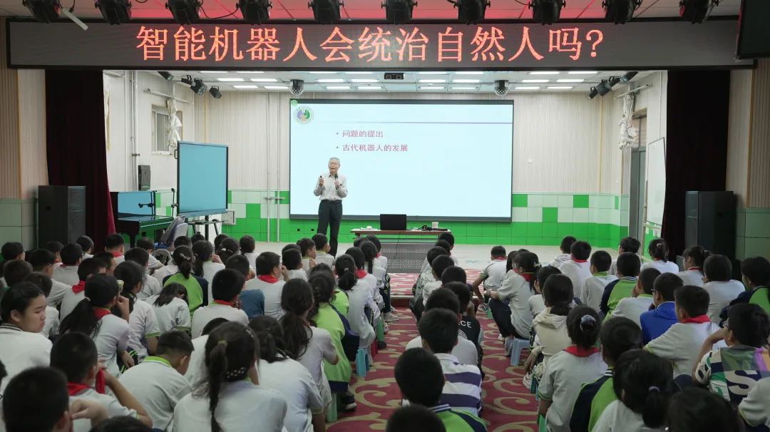 为全面贯彻落实党的二十届三中全会精神和全国科技大会精神,充分发挥北京市老科技工作者的智慧优势,体现老党员先锋队的示范带动作用,展现科技魅力,普及科学知识,传播科学思想,市委老干部局开展全国科普日系列活动。9月23日,北京市老党员先锋队科技科普服务团走进丰台区东高地第四小学,举办“老科技工作者进校园”专场科普讲座暨市关工委首都关心下一代大讲堂送课进校园活动,北京市老党员先锋队科技科普服务团成员,清华大学精密仪器系退休教授、博士生导师董景新带来主题为“智能机器人会统治自然人吗?”的科普讲座。