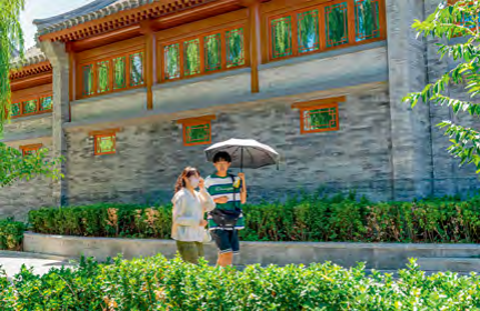 另一方面,片区以展现中轴文化的业态为主、辅以旅游、健康、科技的产业发展定位,引入高品质文化创新业态,打造文商旅居融合的新生活场景。例如宏恩观活化利用遵循公益优先原则,实施了智慧空间运营管理、品牌IP体系建设、文化活动策划承办、社群搭建及维护等运营内容和策略,成为中轴线上极具特色的市民文化中心。又如钟鼓楼持续开展运营探索,自主研发“中国时间”系列、拼图盖章卡、纪念章等文创产品,已经形成了品牌效应。
