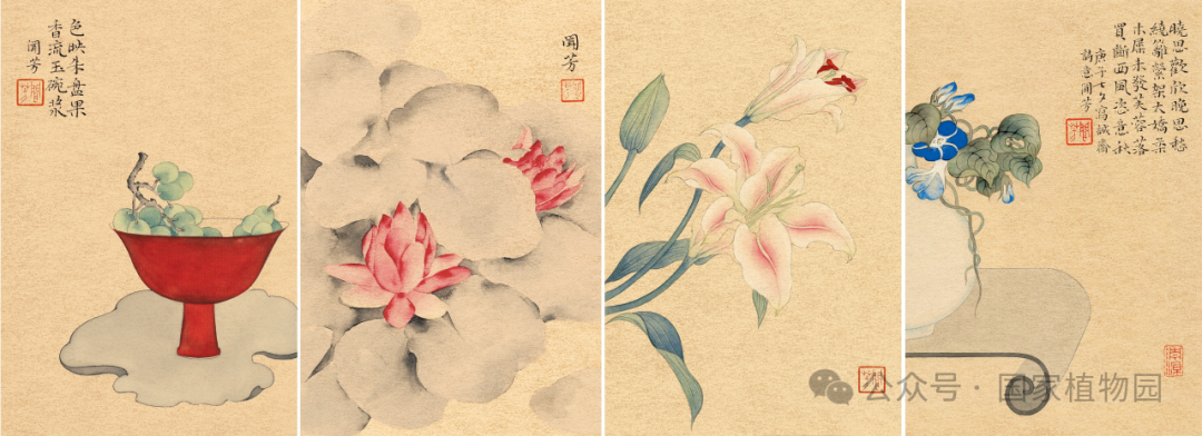 此次于国家植物园科普馆二楼草木绘馆举办的《春华秋实绘画艺术展》,共邀请到四位极具才华的女艺术家——潘缨、刘丽萍、赵闻芳、杨小云,在这里她们以植物为题材,凭借画笔将大自然的美妙与生命力生动地呈现在我们眼前。