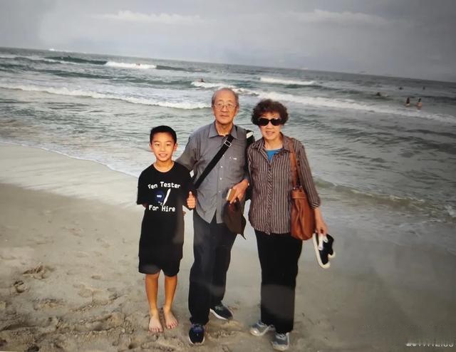 王克争(中)和刘文焕(右)携孙子在海边