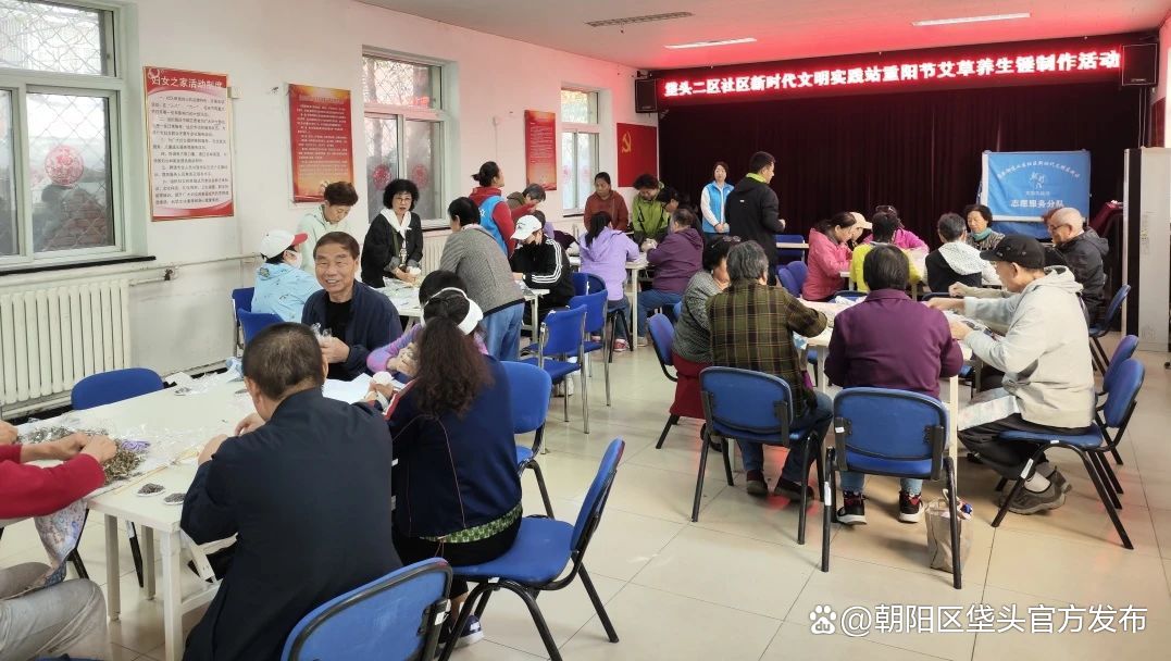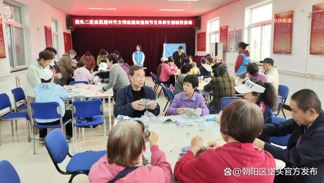 垡头二区社区开展重阳节艾草养生锤制作活动,推广了养生理念,将这份关爱传递给老年朋友。