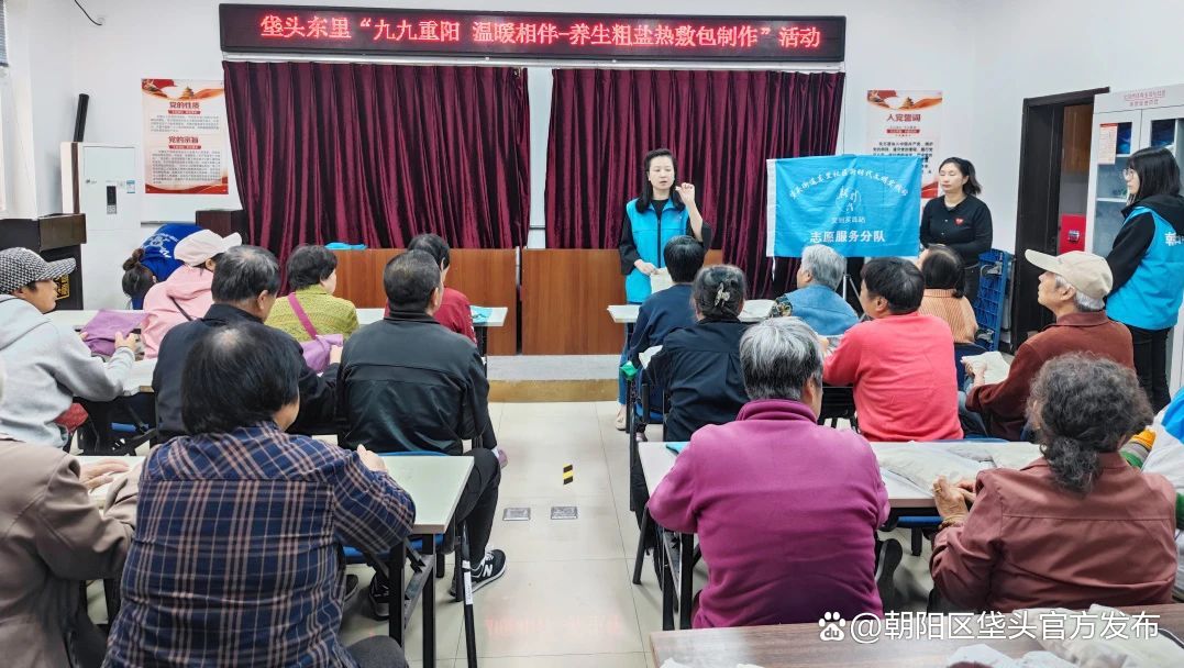 垡头东里社区开展“九九重阳 温暖相伴——养生粗盐热敷包”制作活动,加强了社区居民的养生意识。