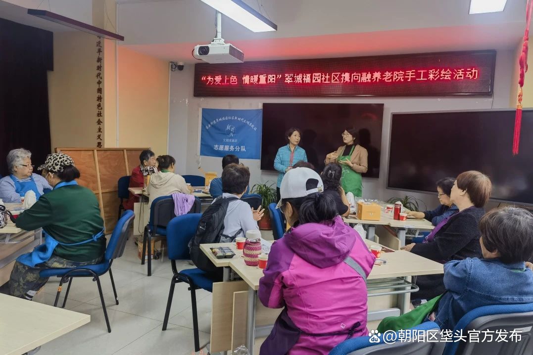 翠城福园社区携手向融养老院开展“为爱上色 情暖重阳”手工彩绘活动,为老年人生活增添一抹浓郁的色彩。