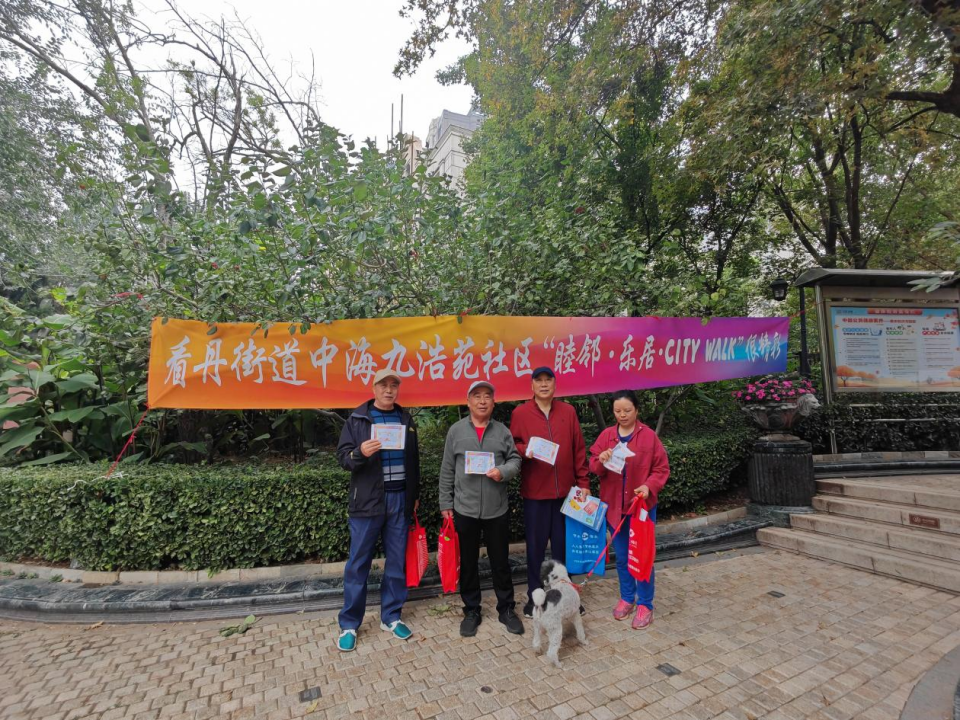 本次活动不仅是一场充满活力的健步走,更是一场集全民反诈、口腔义诊、燃气安全排查、消防安全站点、垃圾分类和金融知识科普、趣味运动会于一体的综合性社区盛会。居民们热情高涨,纷纷加入这场精彩的City Walk中,一起从中海九浩苑二区南门出发,每人领取了专属的打卡卡片和丝带手环,沿着精心规划的路线,依次打卡了各个主题区域。