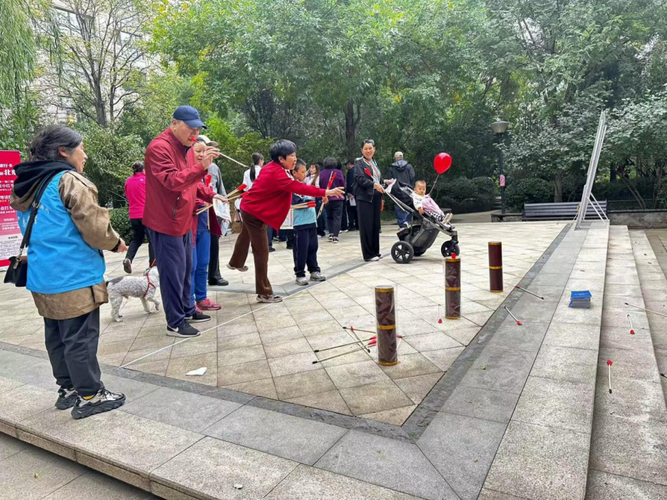 “趣味运动会”更是将现场气氛推向了高潮。现场设置了乒乓球、投壶、踢毽子等互动游戏,在比赛中大家相互加油打气,在愉快的运动氛围中,不仅增进了邻里间的友谊,也让大家在欢声笑语中度过了一段愉快的时光。