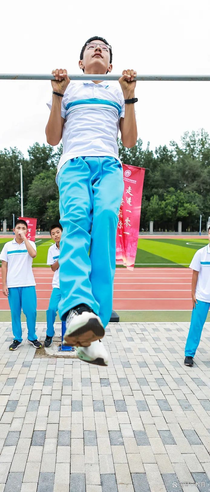 初中生已经进入青春期,身体发育迅速,体能提升是课间活动的重要目标,学校注重其综合体能训练,包括力量、速度、耐力、灵敏度和柔韧性等多个方面的均衡发展。在操场的另一侧,大孩子们或疾驰在跑道上,挥洒汗水、挑战自我,或紧握单杠,奋力完成一个又一个引体向上,锻炼上肢力量,增强体能与耐力。