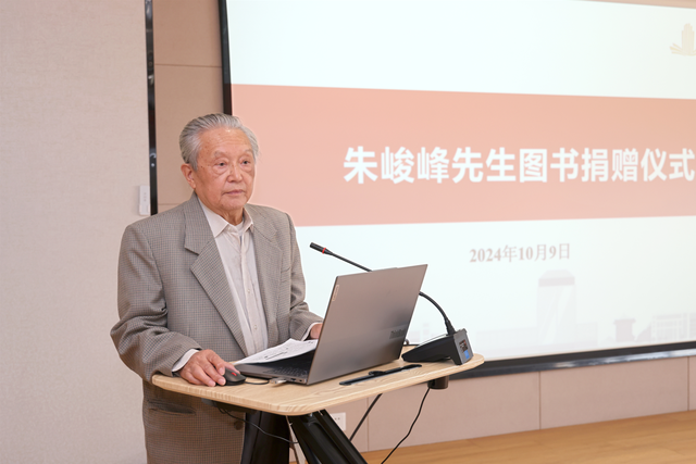10月9日下午,朱峻峰先生图书捐赠仪式暨见面会在我校图书馆三楼元空间举行。江南大学党委常委、副校长倪松涛,中共中央《求是》杂志社原副总编朱峻峰先生及其夫人陈晓娟女士,苏州市委宣传部原副部长、文汇报驻江苏办事处原主任朱金龙,江南大学历史研究院院长朱庆葆,马克思主义学院党委书记李凤梅,图书馆、档案馆馆长陈敬华,历史研究院副院长刘大禹,图书馆副馆长孙颖等师生代表参加捐赠仪式。第一阶段捐赠仪式由陈敬华主持,第二阶段见面会由李凤梅主持。