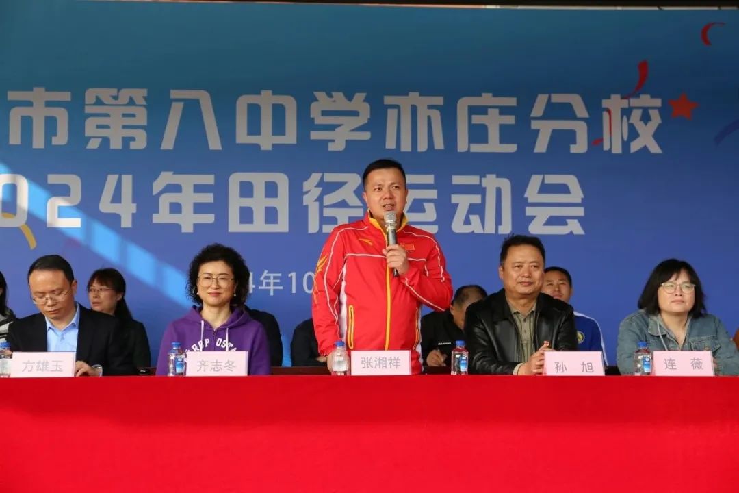 开幕式现场气氛热烈,各方阵整齐划一、精神抖擞地走过主席台。学生们步伐坚定,口号嘹亮,充分展现了学校师生的蓬勃朝气和昂扬斗志。最令人惊喜的是,本次运动会邀请到了北京奥运会举重冠军张湘祥亲临现场。张湘祥的出现瞬间点燃了全场的热情,师生们用热烈的掌声和欢呼声表达着对冠军的崇敬之情。