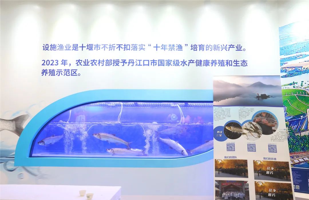 丹江口市立足“中国好水”品牌,做好水文章,做强水经济,在武当山水展台上,一瓶瓶清澈透明的武当山水排列有序。瓶子设计简洁大方,让人一眼就能感受到水源地的纯净与美好。而丹江鲌等水产品在水箱中欢快地游动,展示着丹江口丰富的水产资源。