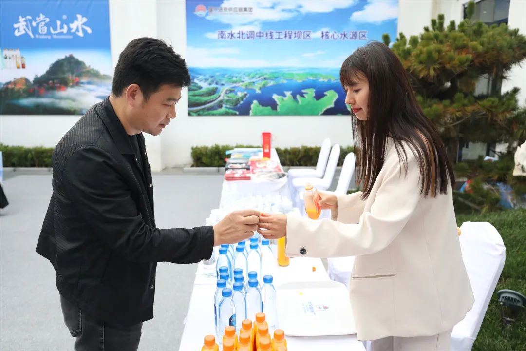 在丹江口市的产品展示区,一箱箱黄澄澄的武当蜜桔散发着诱人的果香。武当蜜桔以其色泽鲜艳、果肉细嫩、甜酸适口、汁多化渣、风味浓郁等特点深受消费者喜爱。由此鲜榨的果汁,更是吸引现场市民纷纷品尝。“一直都听说丹江口的水特别好,今天品尝了水的口感和蜜桔,以及用蜜桔榨的纯果汁,味道都特别好。”市民江龙亮告诉记者。