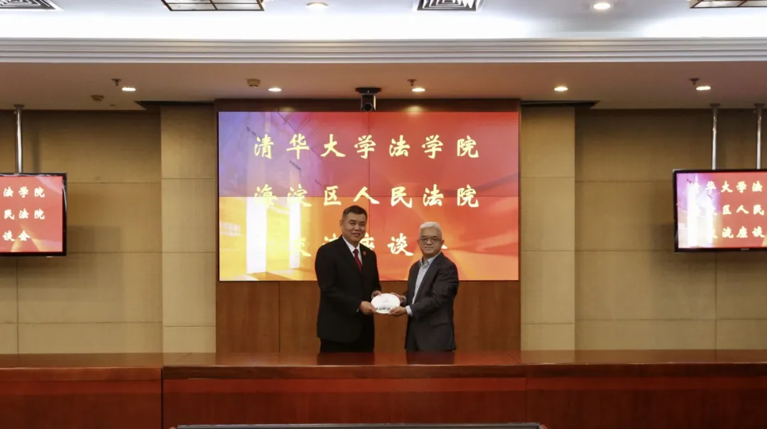 邓海峰书记全面回顾了2013年以来海淀法院和清华法学院合作的历程,对海淀法院为清华法学院提供的来自司法实务部门的支持表示感谢,并表示,同处海淀区,在服务大局、保障高质量发展方面有着相同的责任使命,学院党委高度重视并将进一步完善与海淀法院的合作机制。