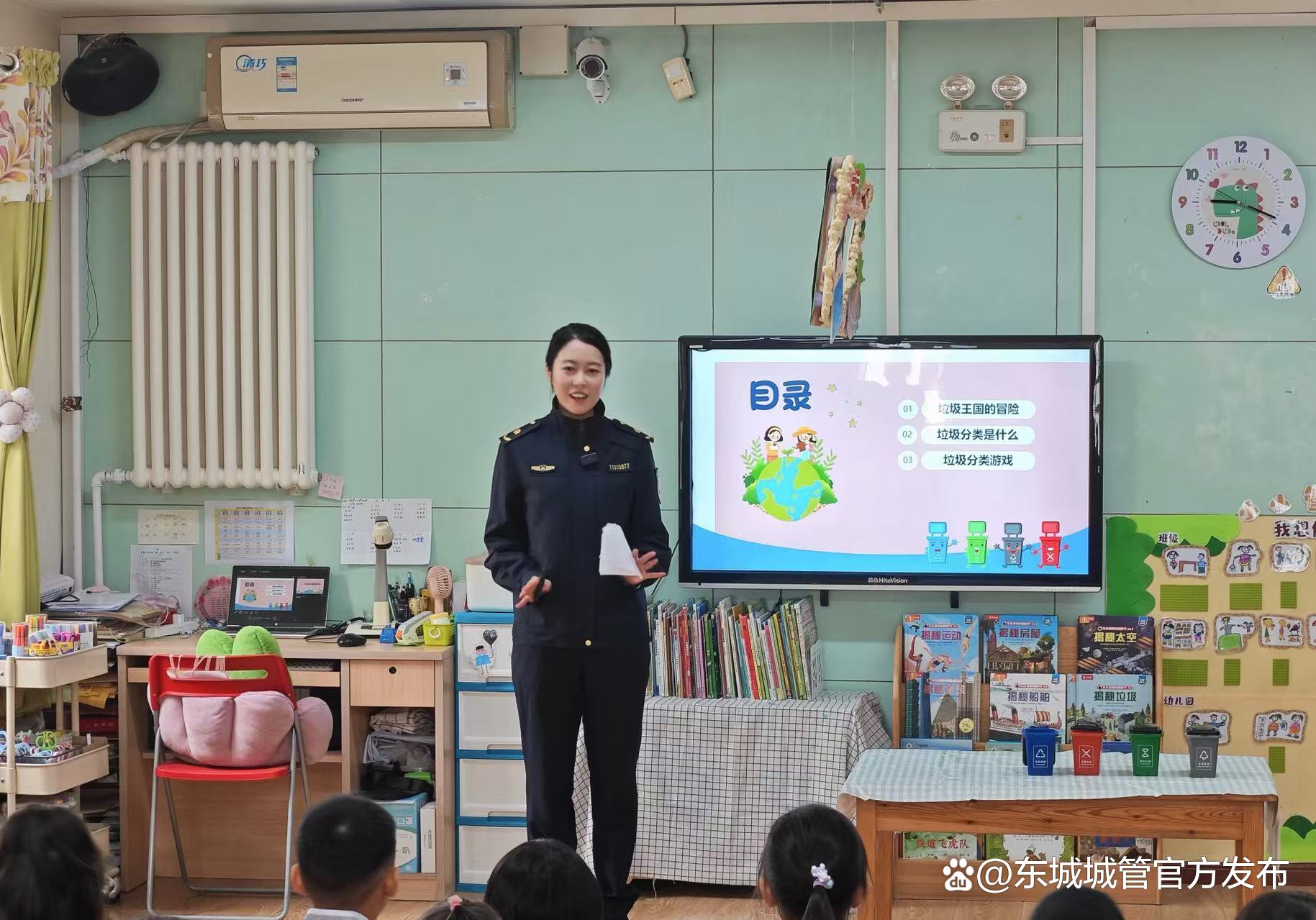 为进一步推动垃圾分类工作的深入开展,培养小朋友们从小养成垃圾分类的好习惯,东城区城管执法局坚持“谁执法谁普法”的原则,持续开展垃圾分类普法宣传进校园活动。近日,东城区体育馆路街道综合行政执法队走进崇文幼儿园,开展了一场生动有趣的垃圾分类普法宣传活动。