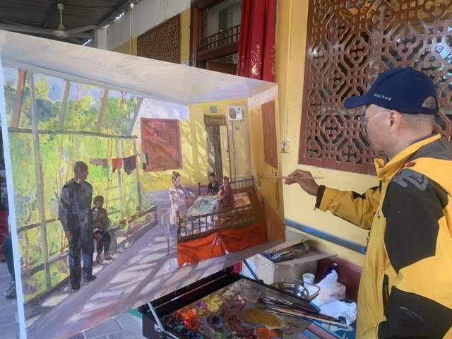 “我一进这院子,就被他们一家人正忙着晒干葡萄的画面深深吸引了,于是拿起我的画笔记录下这温馨的画面。”军事博物馆原美术创作室主任孙立新说。孙立新以细腻的笔触和真挚的情感,将这一场景命名为《小院温情》。“真没想到我们平常的生活场景能被画得这么美,这让我们觉得特别高兴。”村民麦麦提敏说。