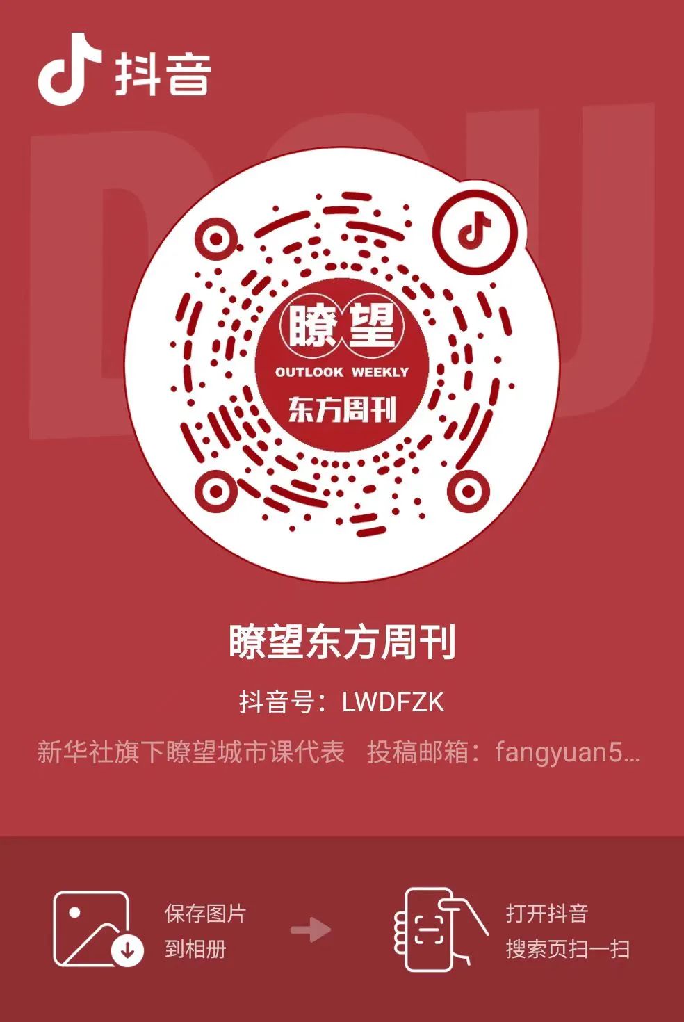 观看“瞭望”抖音号直播请先下载抖音APP,并使用抖音APP扫描二维码