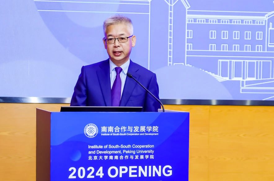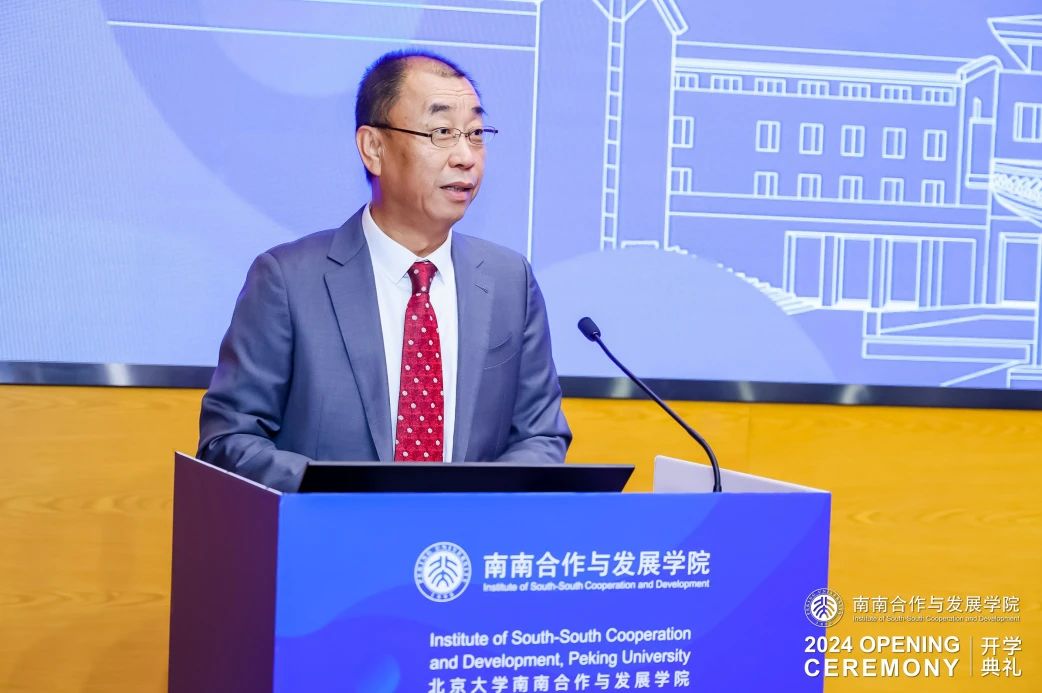 关志勇在致辞中由衷赞赏了北京大学对南南学院建设以及对中国国际发展合作事业作出的卓越贡献与鼎力支持。他指出,经过75年的艰苦奋斗,中国式现代化已经展开壮美画卷,并呈现出无比光荣灿烂的前景。一花独放不是春,百花齐放春满园。作为世界和平的建设者,全球发展的贡献者,中国在致力于自身发展的同时,积极向世界提供中国智慧和中国方案。他认为,当今世界进入新的动荡变革期,南北鸿沟持续拉大,联合国2030年可持续发展议程面临艰巨挑战,如何解决发展赤字、破解发展困境,成为当前人类社会面临的时代课题。他勉励南南学院的学生珍惜在北京大学交流学习的宝贵机会,要善于将知识收获运用到实际中去,为探索符合本国国情的现代化道路作出贡献,不断开创国际发展合作新模式。