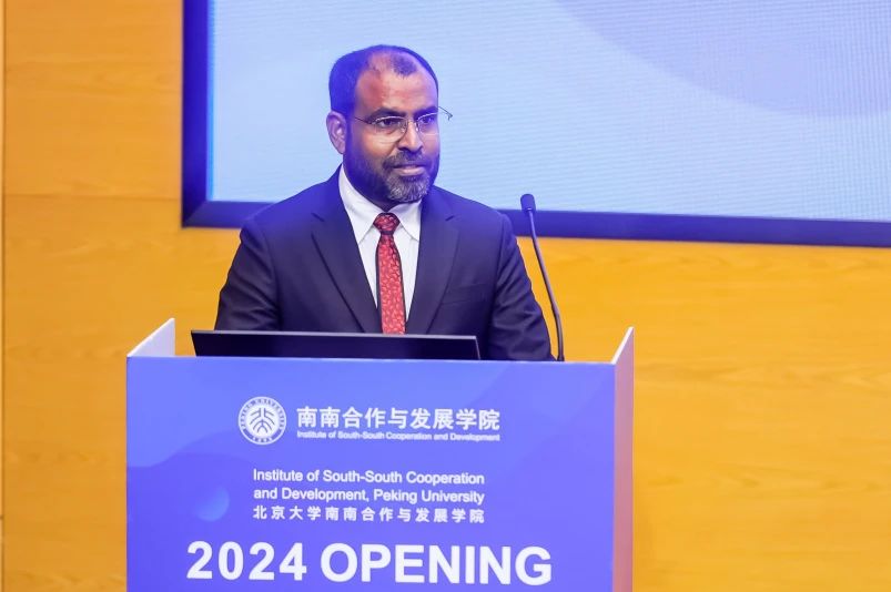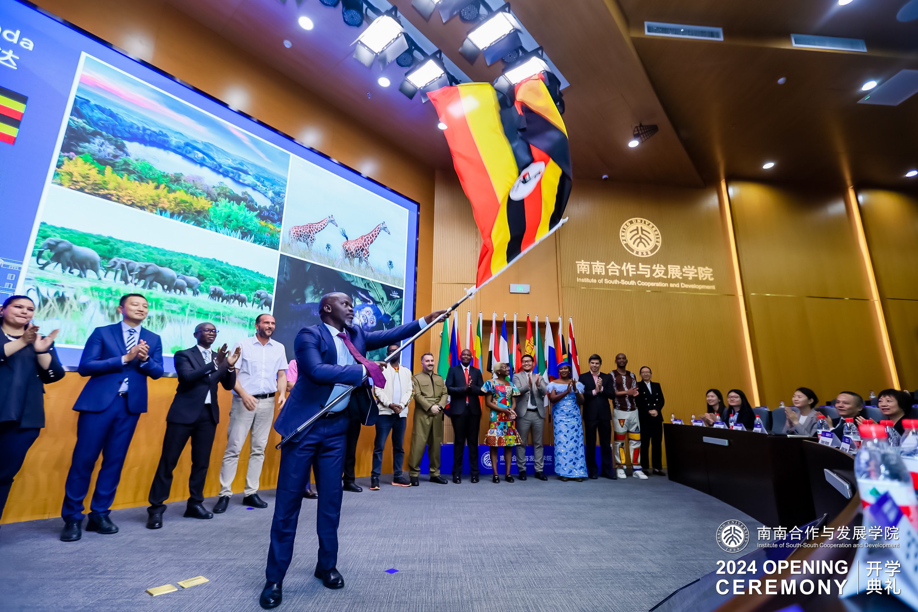 拉希德表示,虽然同学们来自五湖四海,却怀抱着同一个梦想汇聚一堂。南南学院以培育未来的全球领导者为己任,为同学们提供了接触多元视角、开拓视野、建立深厚友谊的宝贵机会,将来自不同文化背景的同学们凝聚成一个大家庭。他表示,在南南学院,同学们不仅能够在课堂上进行理论研究学习,更能通过亲身实践与交流积累经验、知识与技能,以便未来回到本国,更好地服务于国家发展事业,肩负世界公民的责任,助力全球可持续发展目标的实现。拉希德还特别向中国政府与南南学院在同学们求学过程中给予的关怀表达了衷心感谢。“一年之计,莫如树谷;十年之计,莫如树木;终身之计,莫如树人。” 他勉励同学们努力求学,积极进取,共同享受这段充实、精彩的旅程。