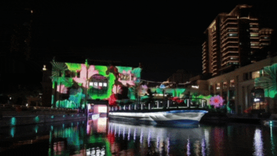 夜幕低垂,亮马港湾的建筑在光影的“魔法”下被赋予了璀璨新生,宛如梦境般绚烂。乘船悠然徜徉于波光粼粼的水面之上,沉浸于一场无与伦比、极致梦幻的水上灯光盛宴之中。