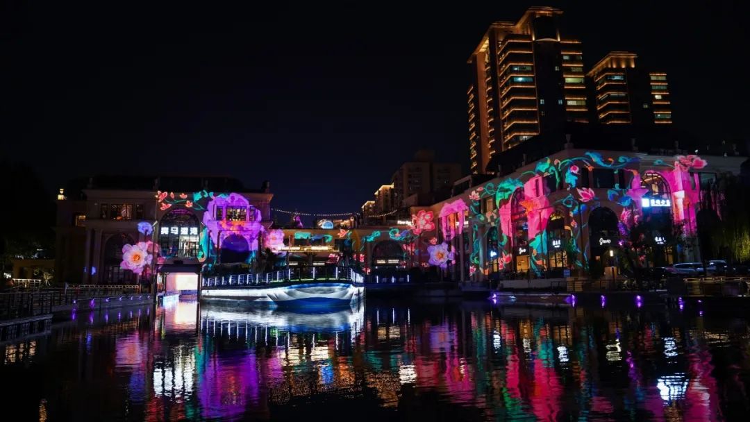 重点观赏区一:亮马港湾“荷影物语、心花怒放、凤羽翩跹”三篇章主题光影秀